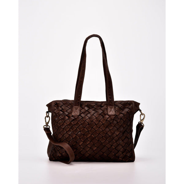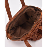 COBB & CO Stafford Leather Plaited Woven Tote Chocolate Brown
