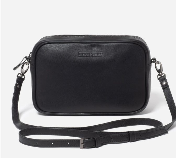 STITCH & HIDE WASHED LEATHER TAYLOR CROSSBODY BAG - BLACK - FREE KEYRING