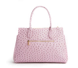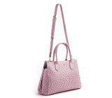 The Koko Satchel and work bag is so magical that it will take your breath away! Handcrafted with premium ostrich embossed rubber fabric, textured cotton lining and multiple zipper pockets this luxury handbag features every bit of extravagance you could desire including our ornate signature zipper charm, beautifully structured handles, and the removable chain shoulder strap.