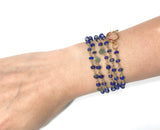 This strand of lapis lazuli with heart detail adds an elegant twist to any mask and looks just like a necklace from behind. Our convertible necklace hooks to your mask allowing you to carry them hands free. Once you no longer want to wear your mask, turn the closure to the back. You can wear this piece as a necklace or bracelet wrapped around your wrist multiple times.