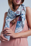 Light grey scarf made from a soft cotton mix This scarf has pink yellow and blue flowers Made in Italy 80% Cotton 20% Silk