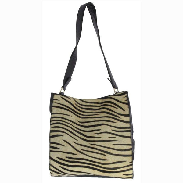 GABEE LEATHER SAFARI KENSINGTON TOTE ZEBRA