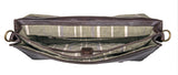 A large double gusset technology compatible leather briefcase that fits a laptop as large as 17 inches, an iPad or other small tablets and all your files and accessories. Separate padded compartments for a laptop and an iPad or small tablet. "Leather: Hidesign's unique full grain vegetable tanned Classic leather. Lining: Hidesign's signature 100% cotton green striped lining. Closure: Tuck tie closure beneath buckles. Handles & Strap: Adjustable and detachable canvas webbing shoulder strap with leather shoulder pad and a leather handheld top handle. Interior Details: Double gusset briefcase with multiple zip and slip pockets; 1 padded laptop compartment; 1 padded iPad/tablet compartment. Measurements: 17.72""L x 12.60""H x 5.51""W"