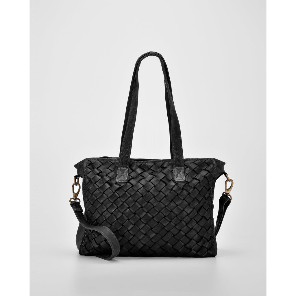 COBB & CO Stafford Leather Plaited Woven Tote Black