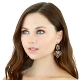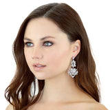 A cascading floral chandelier earring with sparkling glass jewels. Available in bronze or silver tone.
