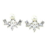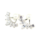 These gorgeous statement ear jackets feature an 18k gold plated setting with marquise cut cubic zirconia crystals. A white pearl stud adds a timeless feminine touch. The pearl studs can be worn alone as single pearl stud earrings.