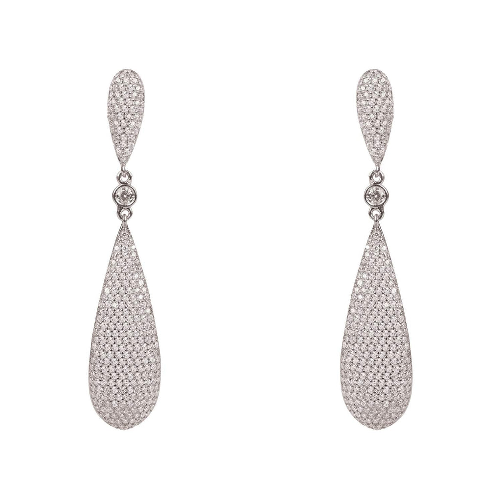 Previous Product Next ProductOur Latelita Coco`s Long Drop Earrings Silver are a truly elegant statement jewellery creation. Designed with a brilliant-cut elongated drop, these earrings are suspended from a similar-shape surmount and feature an array of sparkling white zirconia stones. The overall effect is an elegant and timeless pair of earrings that will take you from desk to dinner with ease.