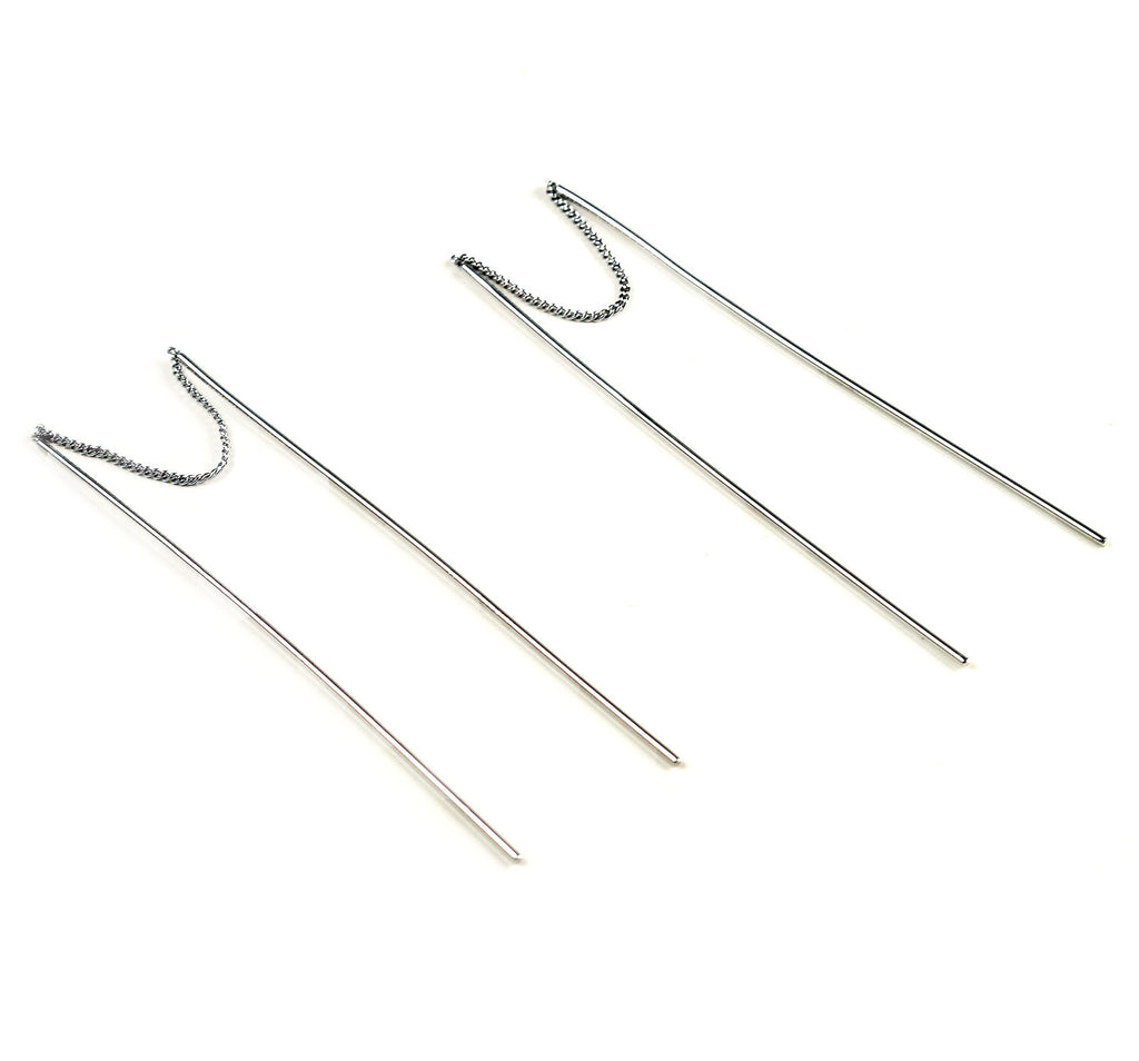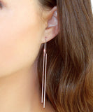 Edgy and chic, these earrings feature a smooth bar design with a dainty chain. Thread through multiple or single earring holes