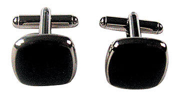 Men's dress attire should make a statement, and a finely detailed pair of cuff links speaks volumes. These rhodium-plated links will add a dash of style to his French-cuff shirts with black lacquered-enamel finish.