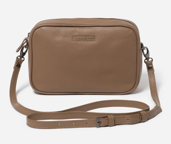 STITCH & HIDE WASHED LEATHER TAYLOR CROSSBODY BAG - OAK BROWN - FREE KEYRING