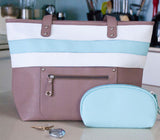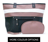 These stylish bags are both practical & fun! Great everyday handbag with two zippered compartments plus a free clutch purse. Great as an evening purse for a night out or a handy cosmetic bag! Available in - taupe and black