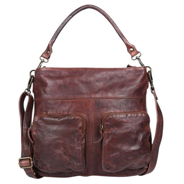 GABEE WASHED LEATHER MORLEY HOBO CROSSBODY BAG CHOCOLATE BROWN