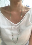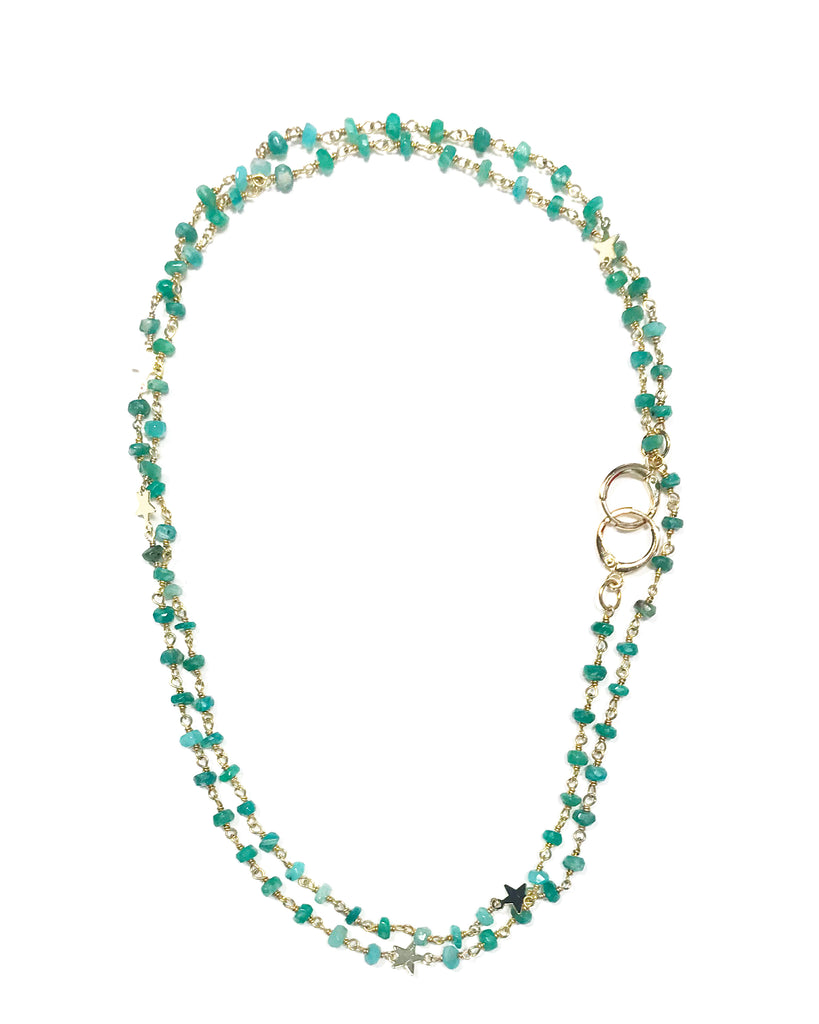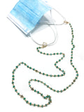 This strand of amazonite with star detail adds an elegant twist to any mask and looks just like a necklace from behind. Our convertible necklace hooks to your mask allowing you to carry them hands free. Once you no longer want to wear your mask, turn the closure to the back. You can wear this piece as a necklace or bracelet wrapped around your wrist multiple times.