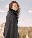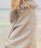 This fur trimmed shawl is fast becoming a best seller.