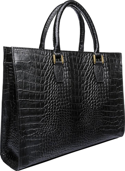 A classic and elegant women's work bag. This bag is sure to stand out and pairs beautifully with office attire. The bag is not bulky, yet can fit necessary papers and a tablet or iPad.