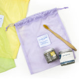 Mesh drawstring bags in assorted sizes.