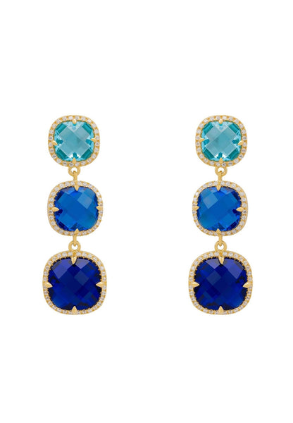 Introducing the Knightsbridge Earrings Gold Blues, a stunning pair of earrings made with 925 sterling silver that has been dipped in 22ct gold.