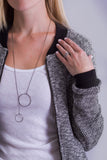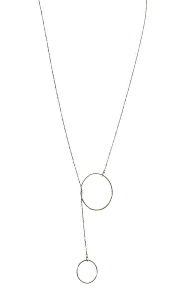 This delicate necklace is a great everyday piece. It can be worn in a number of different ways - wrap around your neck in a short choker style, wear full length with the two circles just meeting or adjust it to any length you like by pulling the small circle through the large one as shown.