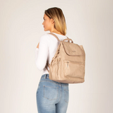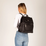 This stylish quilted backpack bag design features polka dot water resistant lining, a padded change mat and multi-purpose bag. It is the perfect bag for storing all your essentials for you and your baby