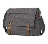 - Adjustable canvas shoulder strap with stylish and functional, brass-plated buckles